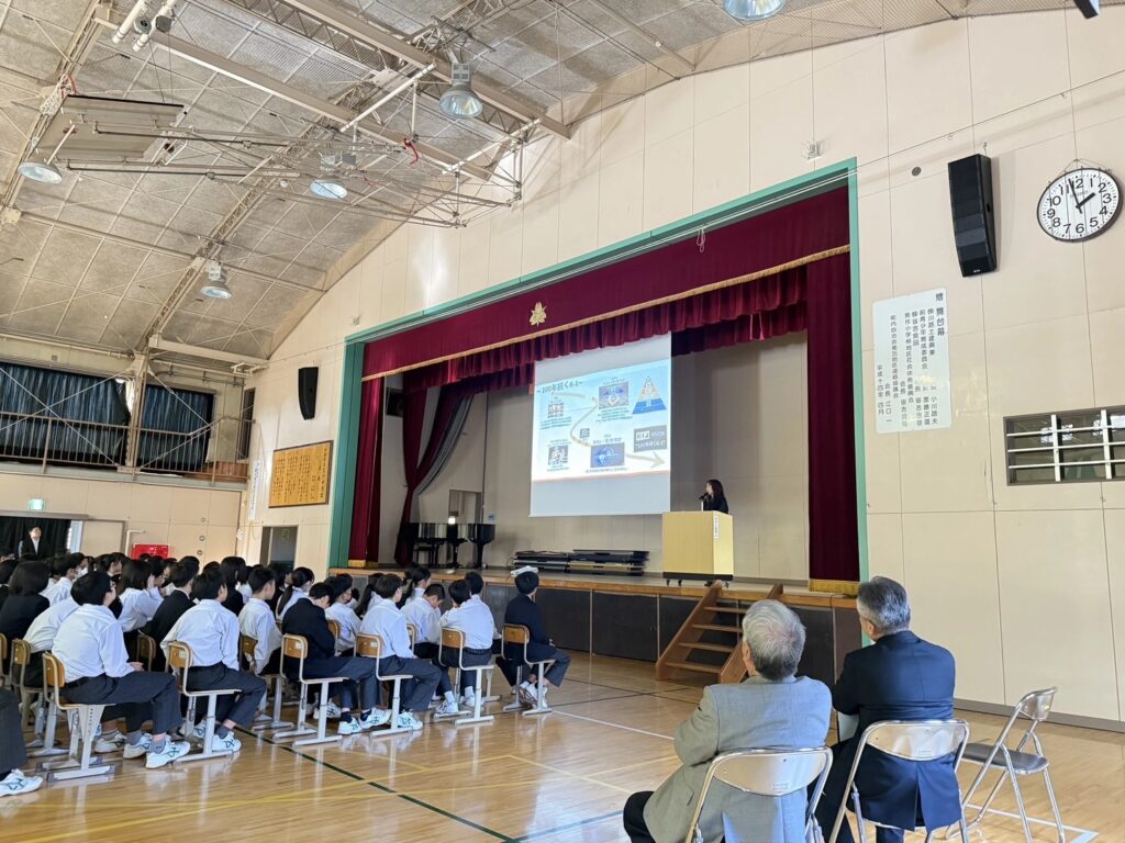 *母校で講演会をし、約300人の中学生の前で夢を語った際の大木の様子
