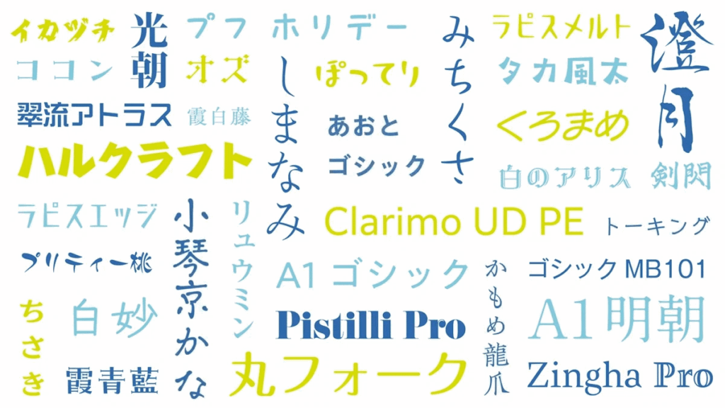 学校のレポートや仕事の書類によく使用される「明朝体」や、看板やサインでよく見る「ゴシック体」、お菓子のパッケージやポスターなどに使われる「デザイン書体」など、さまざまな種類のフォントが存在します。