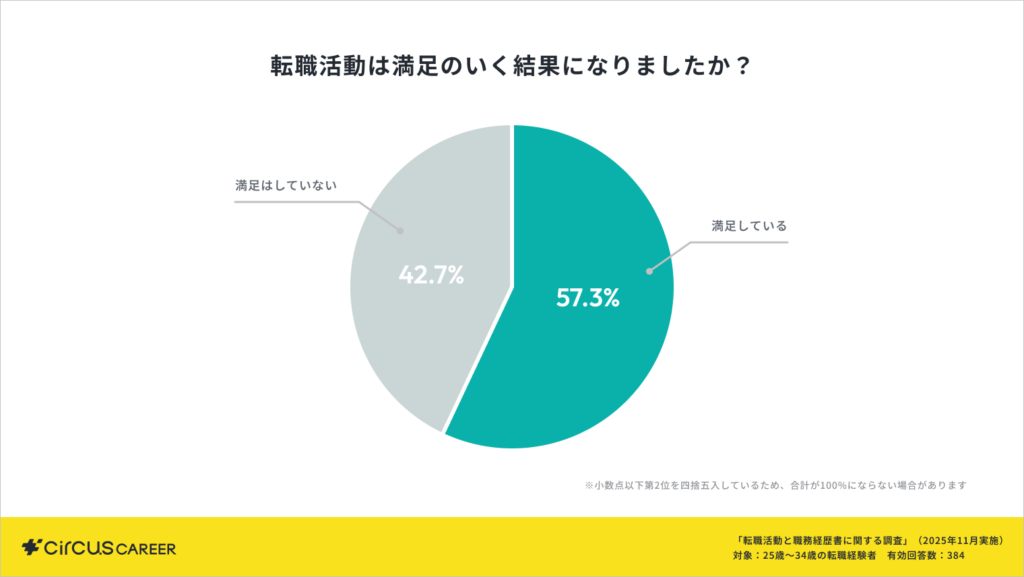 まず、直近の転職活動全体を通して、満足いく結果になったかを調査しました。