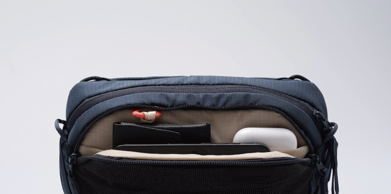 コアスリングはメインコンパートメント、外ポケット、フロントコンパートメント、背面ポケットの4つで構成されています。一方、コアスリング ミニはメインコンパートメントと外ポケットのみのミニマル仕様。いずれも内部には用途別のポケットを備え、小物を美しく収められる収納性が魅力です。