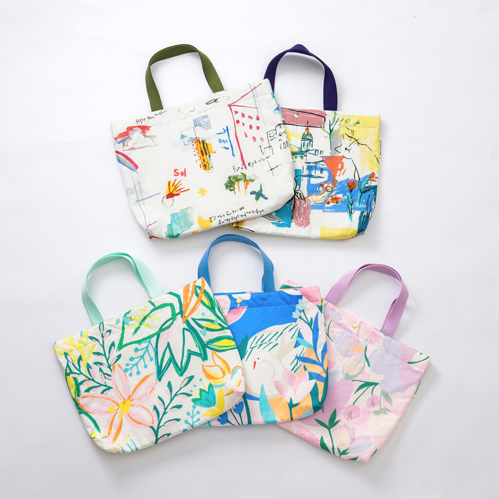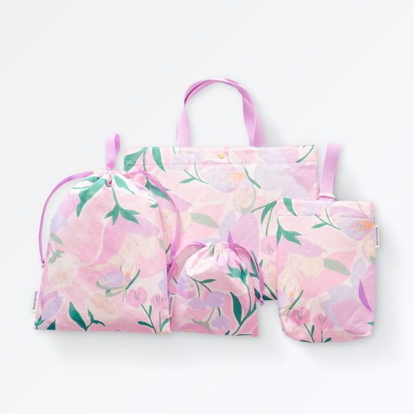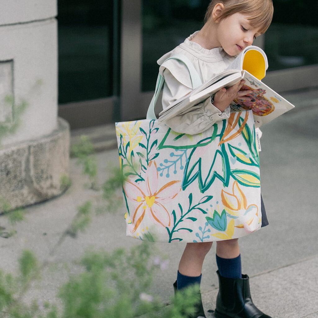 32cm×45 cmで、大きな絵本やスケッチブックも出し入れスムーズ。持ち手はお子さまの手でも持ちやすく柔らかくて丈夫なテープを使用。 通園通学のお道具袋としても、習い事のレッスンバッグとしても大活躍のアイテムです。