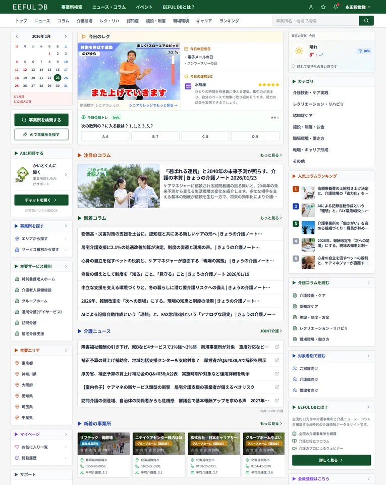 介護事業所検索から、AI時代の介護情報ポータルサイトへ ~毎日使える「今日のレク」を搭載し、EEFUL DBが全面リニューアル 【(株)EEFULホールディングス】