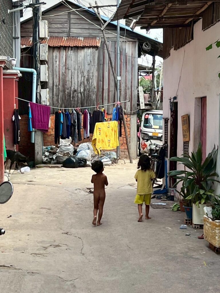プノンペン市内の高層ビル群から程近い場所に、ゴミが散乱し、虫だらけの、異臭も漂うスラム街はあります。カンボジアの経済格差です。 2025年5月、社長HEROsは、このスラム街とフリースクールを訪問し、子どもたちに文具をはじめとする支援をお贈りいたしました。