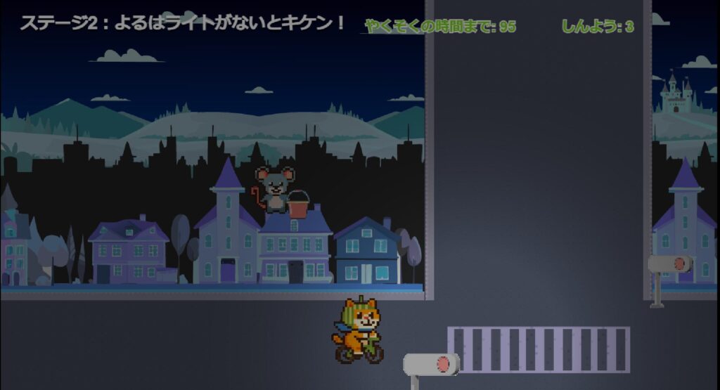 プレイヤーは、「早く進みたい気持ち」と「ルールを守る判断」の間で迷いながら、制限時間内のクリアを目指します。