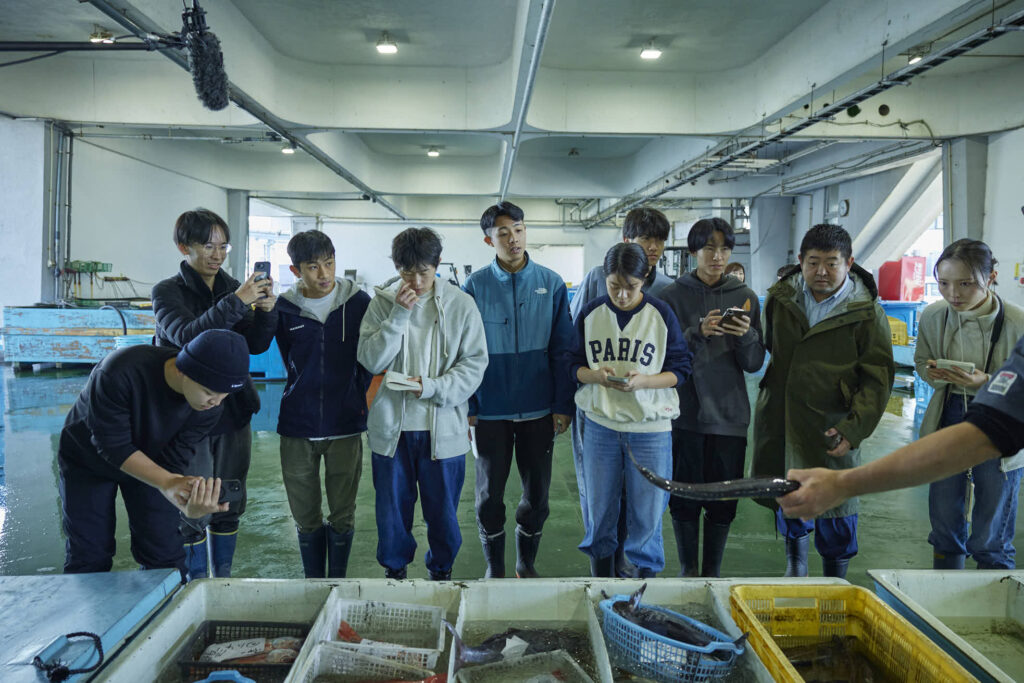 参加する学生は、資源管理の政策、沿岸・海洋環境、水産流通・日本の魚食文化などの講義を通じ、日本の水産業の現在について学びます。同時に、定置網漁船への乗船、競りの見学、レストランでの研修を通して、魚が生物から食材へと変わり、調理が施され、私たちの口に届くまでの流れを実際に体験します。