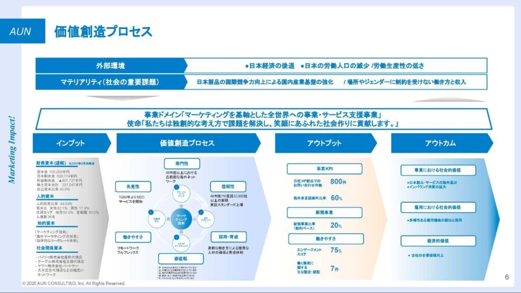 ▼価値創造プロセス (2025アウンコンサルティング株式会社 統合報告書より引用)