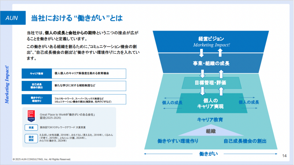 あの図式化は私もこだわったポイントです。「働きがい」という言葉は抽象的になりがちですが、御社ならではの定義ができましたね。
