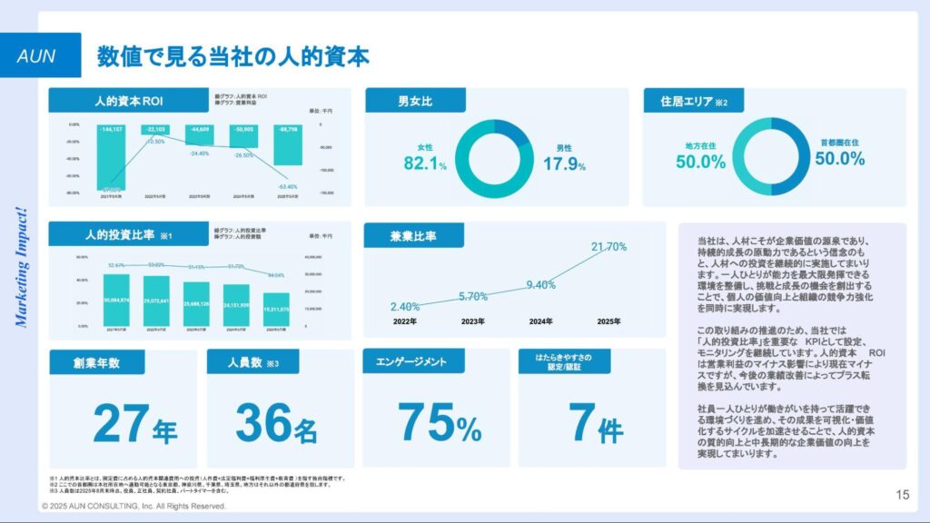 ▼数値で見るアウンコンサルティング株式会社の人的資本 (2025アウンコンサルティング株式会社 統合報告書より引用)
