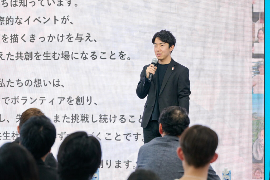 大阪万博で行った「紙飛行機プロジェクト」を拡大し、世界中の若者から集めたメッセージ動画の制作や、学生同士のディスカッションの場を計画。「学生の共創を、横浜で行っていきたい」と今後の展望を示しました。