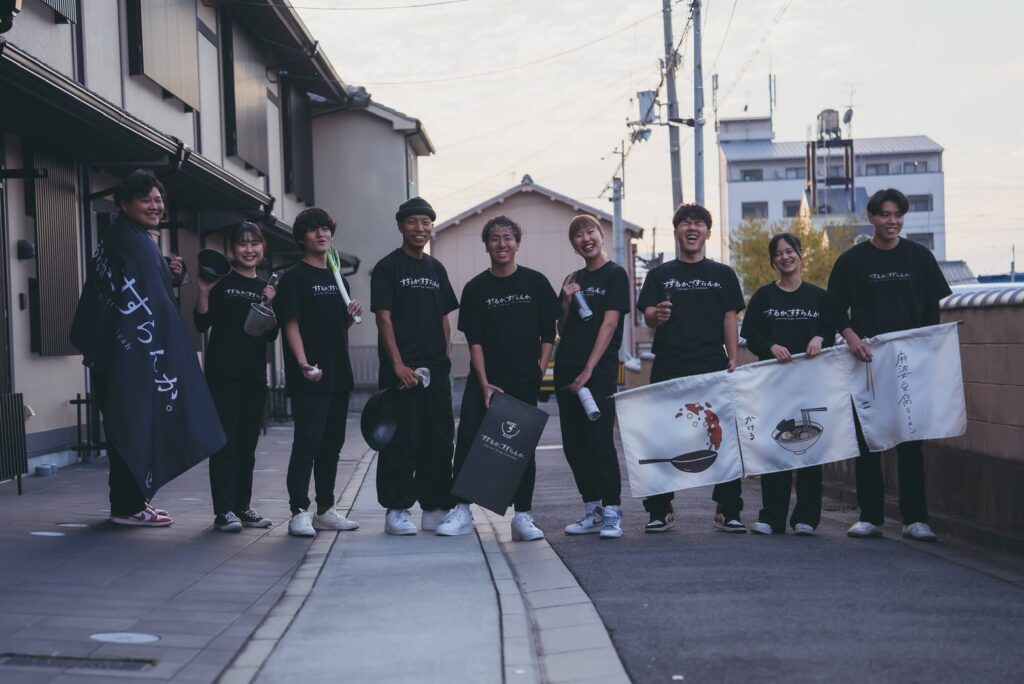 店名は私の口癖「やるか、やらんか。」から「すするか、すすらんか。」に。しかし、オープンしても客足は簡単には伸びず、駅前でのビラ配り、SNS運用、プレスリリースを持ってテレビ局へ通うなど、できることはすべてやりました。やがてお客様が増え、志を持つ学生たちも集まり、店舗運営以外にも様々なことに挑戦するようになり、2022年4月に、株式会社やるかやらんかを設立。Z世代の視点を生かしたSNS・ブランディング支援など、クリエイティブ領域にも事業を広げてきました。